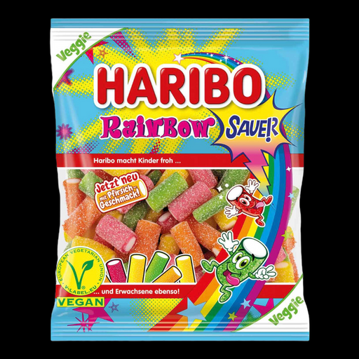 Mit Haribo Rainbow sauer geraten Fruchtgummi-Fans ins Schwärmen. Die etwa 5 cm langen Konfektstückchen in Fruchtgummi sind mit einer extrasauren Sc...
