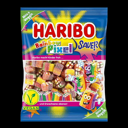 Haribo Rainbow Pixel sauer veggie sind ein buntes Vergnügen, das lustig auf der Zunge prickelt. Die leckeren Fruchtgummi-Ziegel sorgen mit leckerem...
