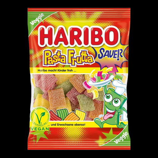 Haribo Pasta Frutta Sauer sind extra-saure Fruchtgummi-Stücke in den Geschmacksrichtungen Apfel, Orange, Zitrone und Erdbeere. Durch ihre weiche Ko...