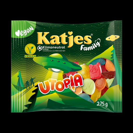 Die Katjes Family Utopia sorgen mit bunten UFOs und Sternen für außerirdisches Nasch-Vergnügen. In sechs utopischen Geschmacksrichtungen für die ga...