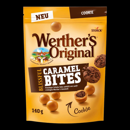 Knackiger Schoko-Keks umhüllt von sanft-cremigem Werthers' Karamell. Die neuen Werther's Original Blissful Caramel Bites Cookie sind ein echter Lec...