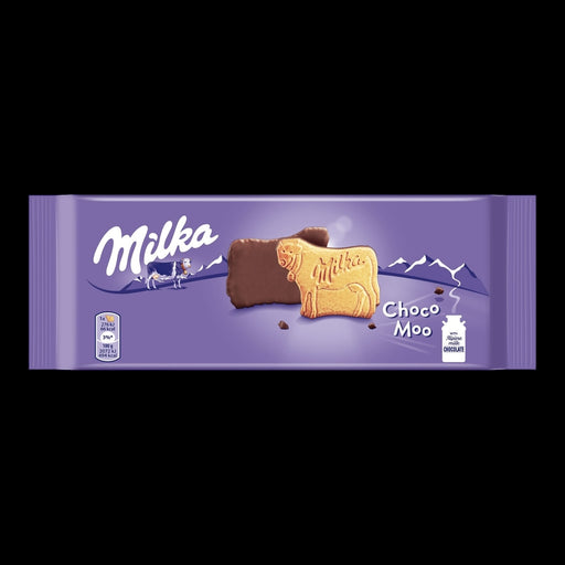 Entdecke die wunderbare Welt von Milka mit Choco Moo! Diese köstlichen, knusprigen Kekse in Form einer Kuh sind mit zarter Alpenmilch-Schokolade üb...
