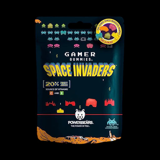 Das legendäre Videospiel als originalgetreues Fruchtgummikonzept. Die leckeren Fruchtgummis von Powerbeärs enthalten alle 6 kultigen Space Invader...