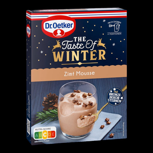 Dr. Oetker Zimt Mousse, festliche Mischung für winterliches Zimt Mousse mit Bronze-Dekorsternen.Wohlschmeckende und weihnachtliche Desserts lassen...