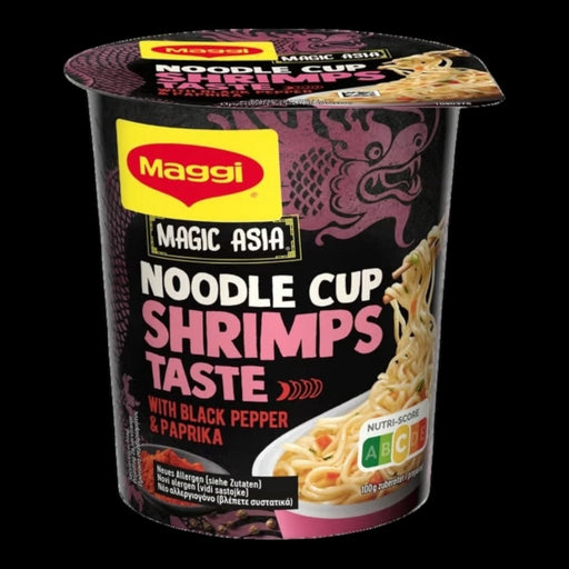 MAGGI MAGIC ASIA Noodle Cup Shrimps Taste – das Meer in deiner Schüssel. Diese verlockende Instant-Nudelsuppe fängt das feine Aroma von frischen Ga...