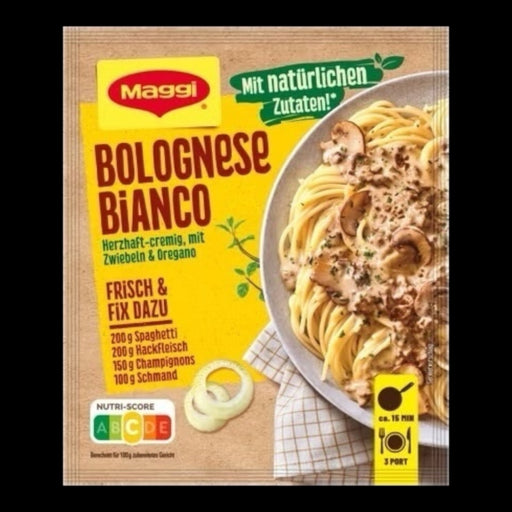 Erleben Sie italienische Raffinesse mit MAGGI Fix für Bolognese Bianco. Diese exquisite Gewürzmischung verleiht Ihrer Pasta eine cremig-würzige Sa...