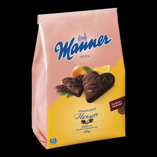 Manner Orangen Herzen lassen Ihres höher schlagen, wenn Sie es gerne fruchtig mögen. Denn unter dem Überzug aus feinherber Zartbitter-Schokolade sc...