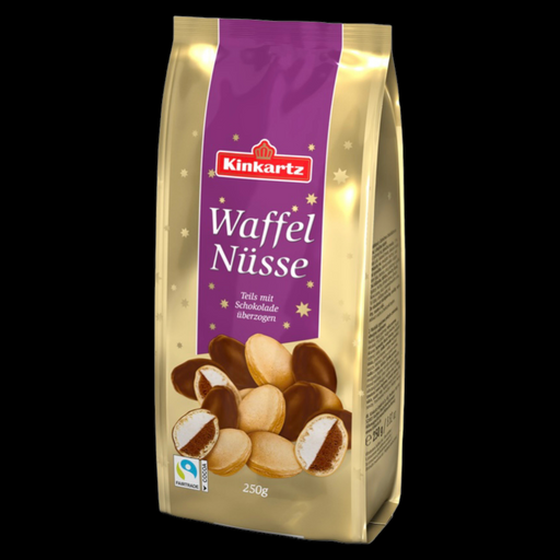 Doppelt schmeckt besser. Die Kinkartz Waffel-Nüsse bestehen aus einer knusprigen, hauchdünnen Waffel-Hülle, die doppelt mit einer feinen Vanille- u...