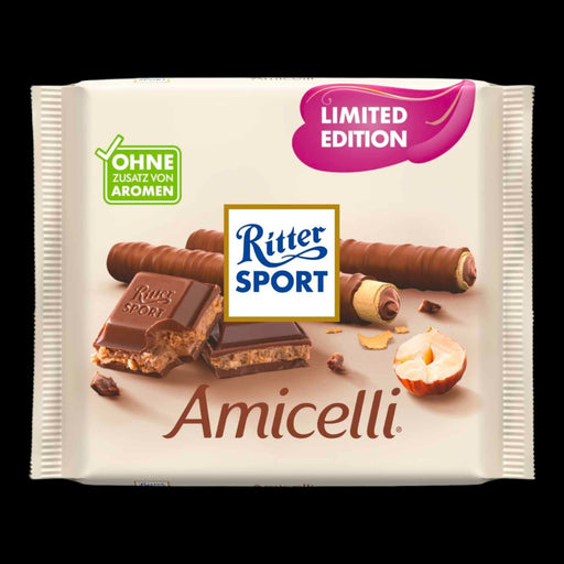Entdecke den köstlichen Genuss von Ritter Sport Amicelli Schokolade! Mit 100g purem Geschmack und der perfekten Balance zwischen knackiger Schokola...