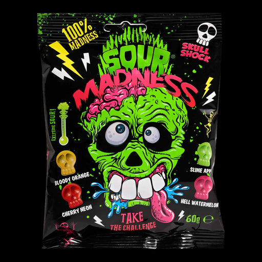 Sour Madness ist eine echte Mutprobe, die selbst hartgesottene Naschkatzen verrückt werden lässt. Die lustigen Totenköpfe sind unbeschreiblich saue...