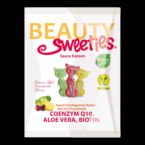 BeautySweeties Saure Katzen gefallen auf den ersten Blick. In ihrer Katzenform sind die gezuckerten sauren Fruchtgummi-Figuren einfach zum Anbeißen...