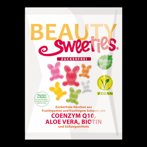 BeautySweeties Zuckerfreie Häschen hüpfen wie von selbst in den Mund. Die drolligen Fruchtgummi-Figuren sind am Boden mit leckerem Schaumzucker ver...