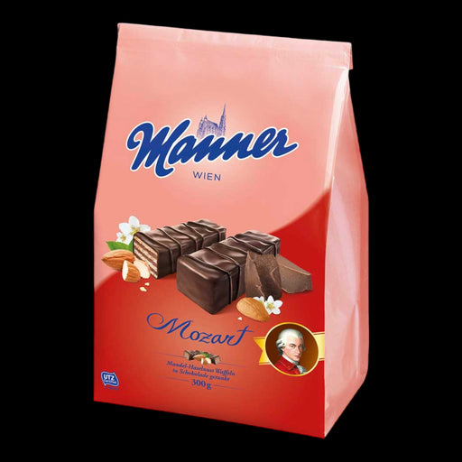 Mit den leckeren Manner Mozart Mignon Schnitten erleben Sie den beliebten Mozart-Geschmack in einer krossen Manner-Waffel. Die knusperzarte Waffel ...