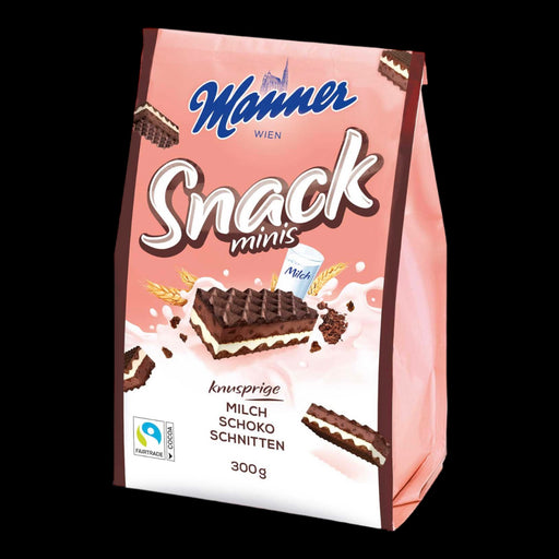 Mit den köstlichen Manner Snack Minis Milch Schoko Schnitten können Sie ein paar unwiderstehliche Leckerbissen genießen. Eine krosse Kakaowaffel um...