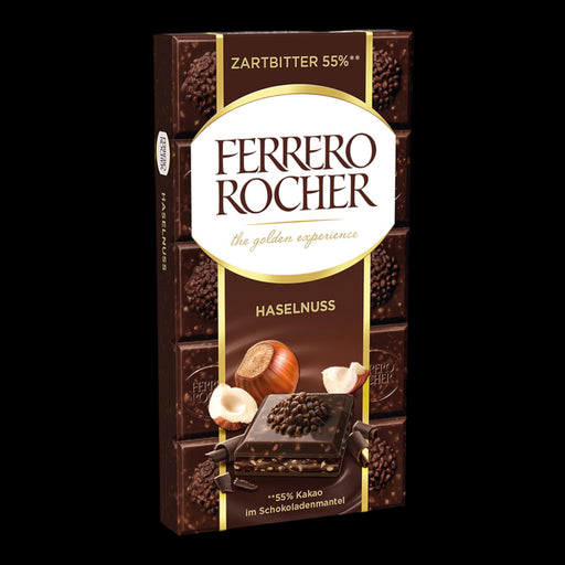 Dunkler Genuss in Tafelform. Die feine Ferrero Rocher Tafel Zartbitter verführt alle Fans der beliebten Goldkugeln mit einer einzigartigen Kreation...