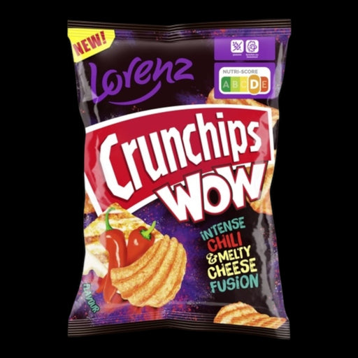 Erleben Sie eine Geschmacksexplosion mit Crunchips WOW Intense Chili & Melty Cheese Fusion. Diese unwiderstehlichen Chips bieten die perfekte B...