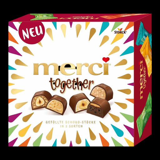 Gönnen Sie sich das perfekte Geschenk der Dankbarkeit mit merci together 175g. Diese exquisite Auswahl an erstklassigen europäischen Schokoladen ...