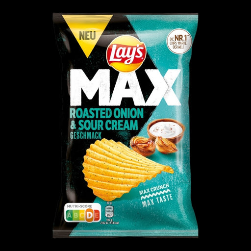 Entdecken Sie den einzigartigen Geschmack von Lay's Max Roasted Onion & Sour Creme! Genießen Sie die knusprige Textur und den vollmundigen Gesc...