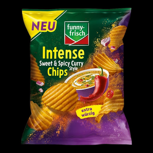 Erleben Sie den intensiven Geschmack von funny-frisch Intense Chips in der verlockenden Kombination Sweet & Spicy Curry Style. Diese 110g Packu...